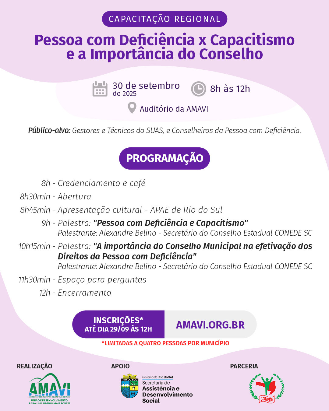 Capacitação Regional - Pessoa com Deficiência x Capacitismo e a Importância do Conselho