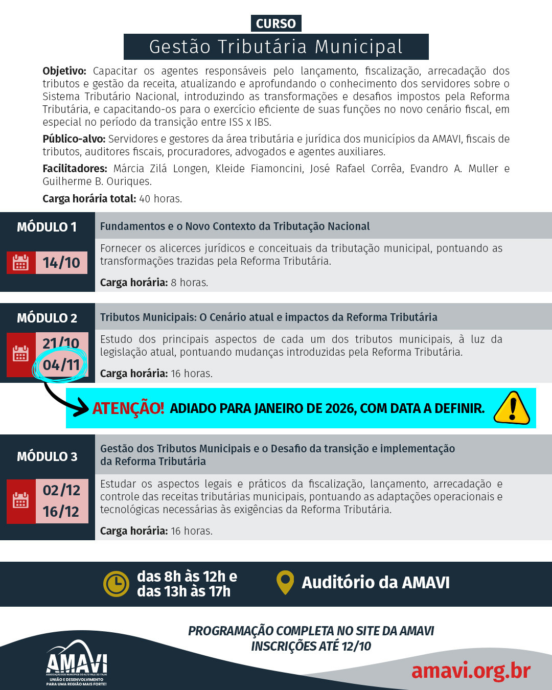 - Cronograma - Programa Curso Gestão Tributária Municipal