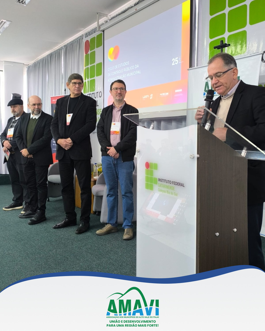 O Tribunal de Contas de Santa Catarina (TCE/SC) realizou hoje, 10, em Rio do Sul, mais uma etapa do 25º Ciclo de Estudos de Controle Público da Administração Municipal. A solenidade de abertura contou com a presença do presidente da AMAVI, Manoel Arisoli Pereira.