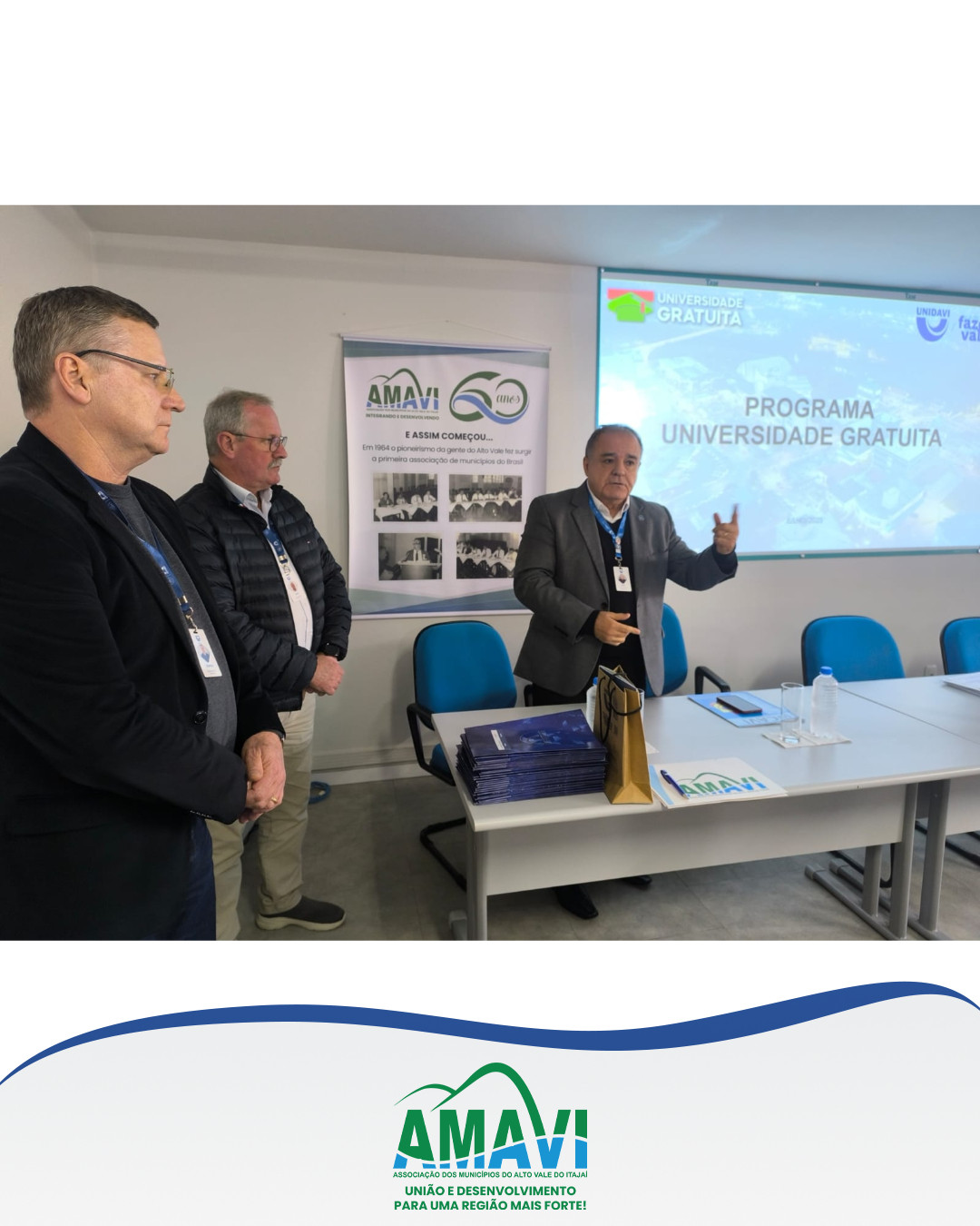 O principal assunto da assembleia da AMAVI, realizada no dia 09, foi a apresentação e orientações sobre o Programa Universidade Gratuita. O tema foi abordado pelo Reitor da UNIDAVI, professor Alcir Teixeira, pelo Pró-reitor de Pesquisa, Extensão e Inovação, Charles Roberto Hasse e pelo professor Aldo Kaestner. Os representantes da UNIDAVI falaram sobre o regramento do programa e como será a contrapartida dos beneficiados.