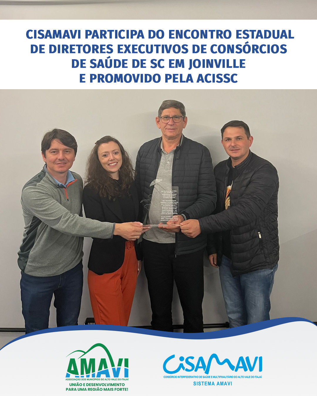 Nos dias 07 e 08 de outubro, o CISAMAVI marcou presença no Encontro Estadual de Diretores Executivos de Consórcios de Saúde de SC, realizado em Joinville e promovido pela ACISSC.