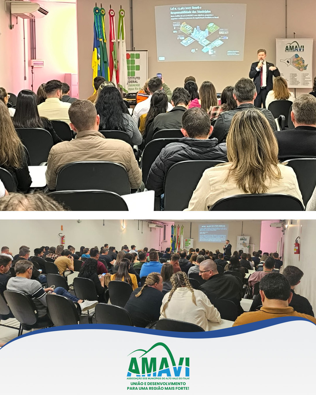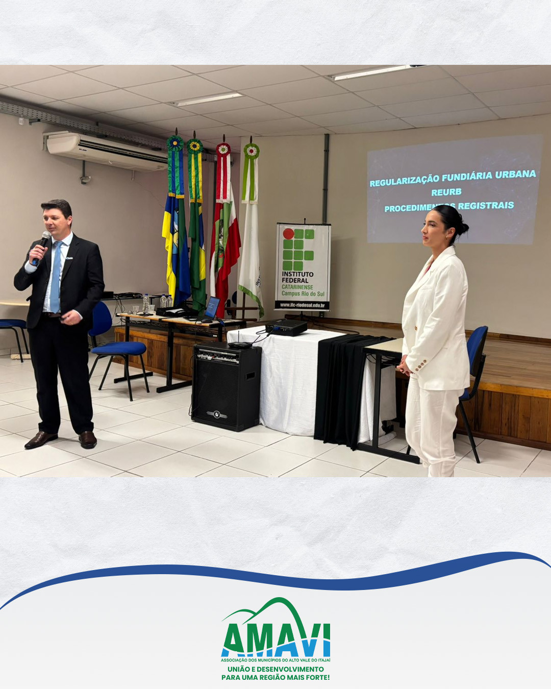 Cerca de 150 servidores públicos municipais participaram ontem, 8, da capacitação "REURB na Prática - o papel dos Municípios na Regularização Fundiária", promovida pela AMAVI. O encontro foi realizado no Instituto Federal Catarinense (IFC), no bairro Progresso, em Rio do Sul, e reuniu representantes do Ministério Público, especialistas e profissionais da área de Registro de Imóveis.