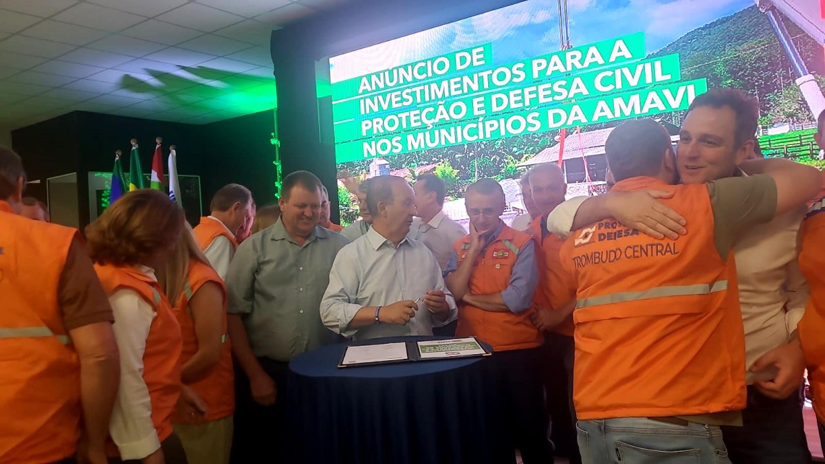 AMAVI acompanha prefeitos durante assinatura de contratos com Defesa Civil de SC